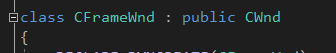 CMainFrame의 클레스의 선언부를 보면 CFrameWnd를 상속 받아 구현된것을 볼 수 있습니다.