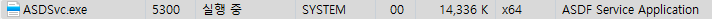 ASDSvc.exe 프로세스의 상세 정보를 확인해보니 ASDF Service Application이라고 설명되어 있습니다.
