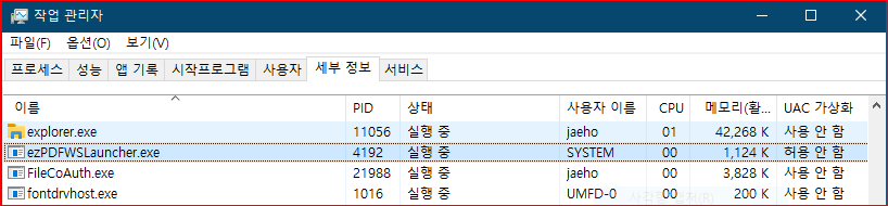 해당 프로세스는 공공기관 및 개인과 기업이 사용하는 PDF 열람 환경을 제공하는 뷰어로 다음과 같이 프로세서도 많은 부담을 주지 않는 것으로 확인됩니다.