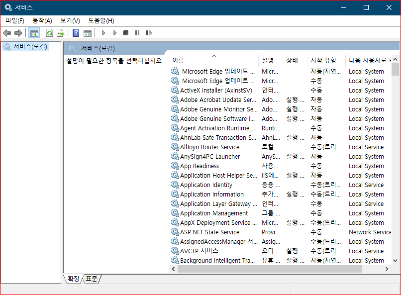만약 실행되지 않는 다면 서비스 명을 다시 한번 검색 해보시길 바랍니다.