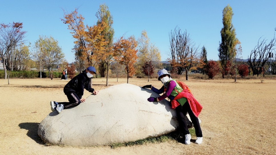 쭉~~ 걸어가다 보니 '강천섬'의 유명한 은행나무 길과 잔디밭이 나오더군!!
