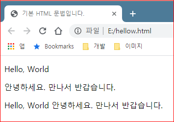 실행 결과를 보시면 알시겠지만 <p> 태그를 단락을 나누어 주는 기능을 합니다.