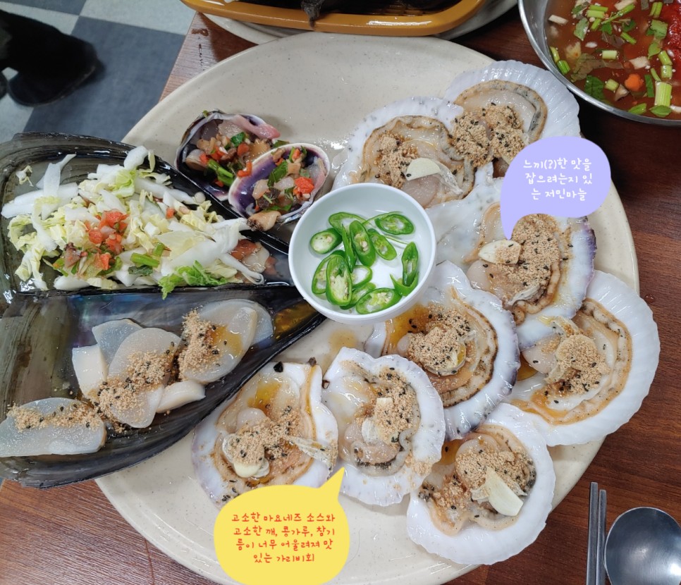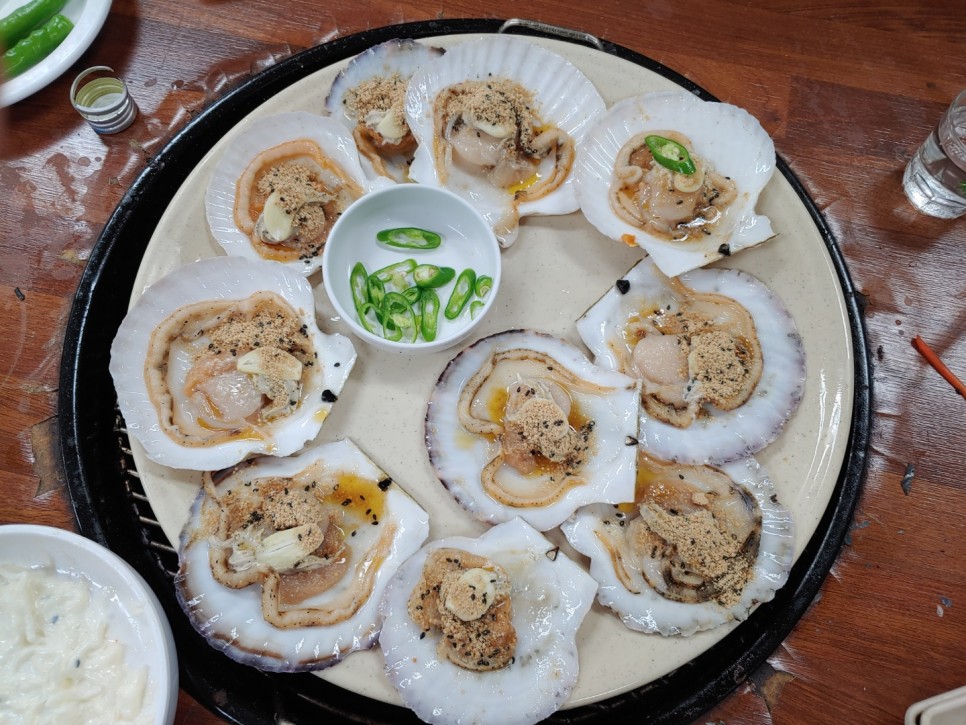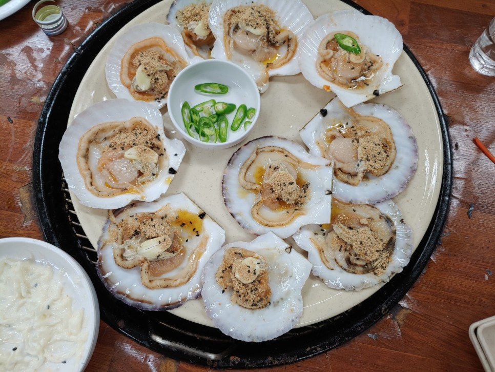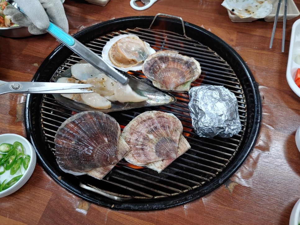 소라, 전복, 굴, 낙지, 피조개, 멍게, 해삼 등이 나왔다.